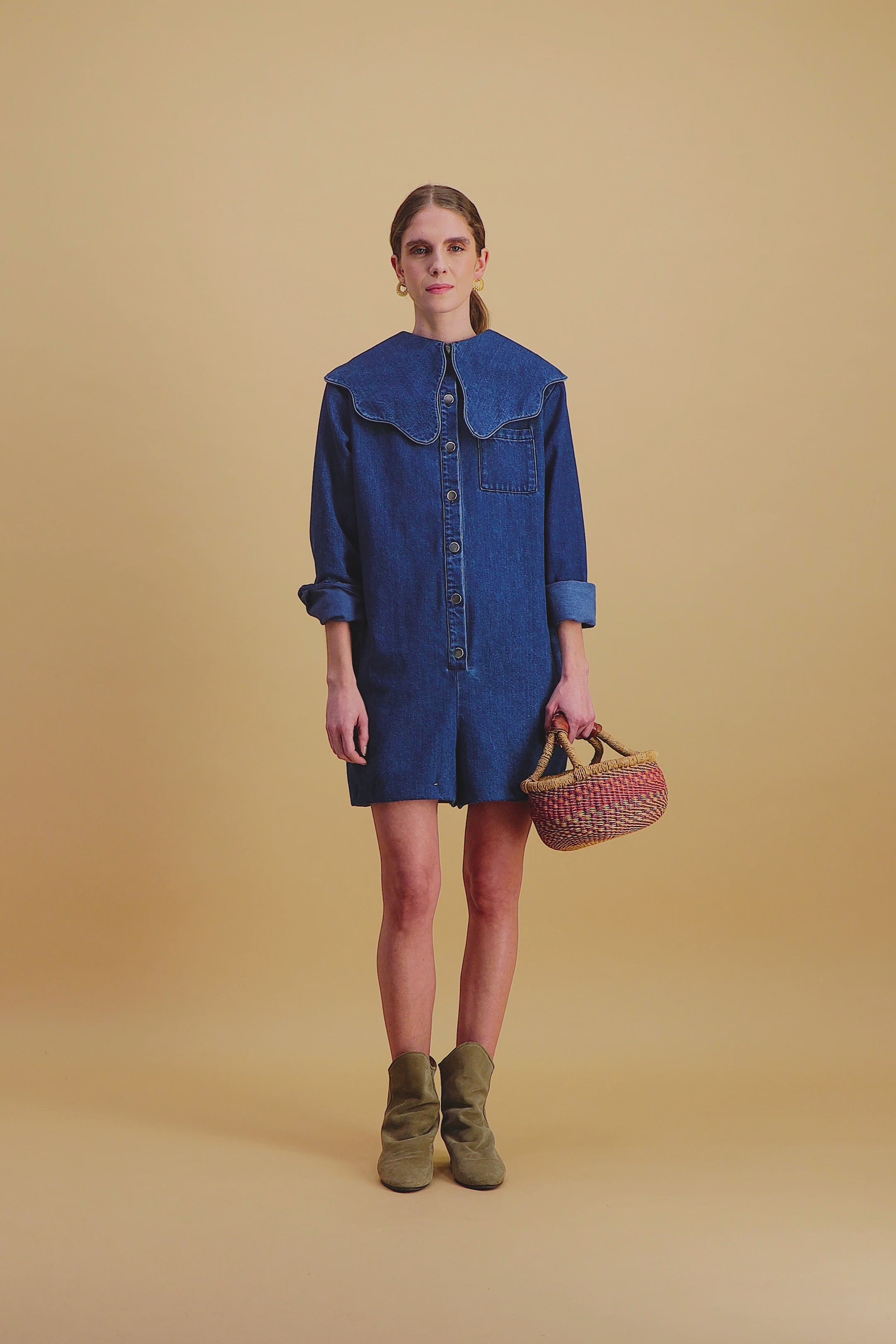 The short cut of the jumpsuit allows for great freedom of movement while reinforcing the casual-chic aesthetic.